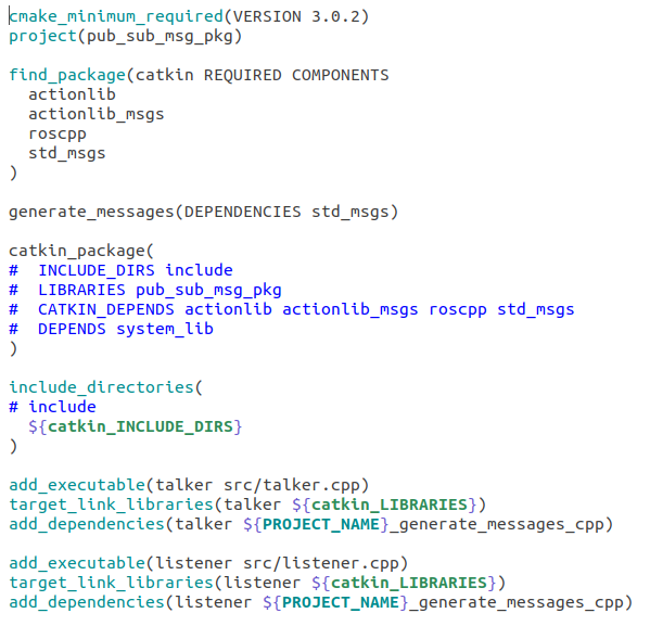 catkin_create_pkg pub_sub_msg_pkg std_msgs roscpp message_generation actionlib actionlib_msgs