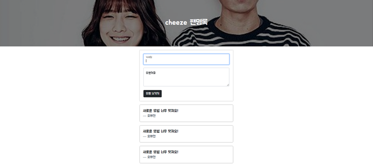 부트스트랩 시작 템플릿과 구글 폰트를 이용하여 팬명록을 만든다.