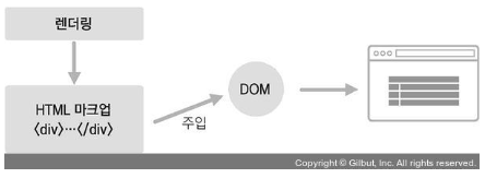 리액트에서는 render 함수가 바로 그 역할을 담당하고 있다.