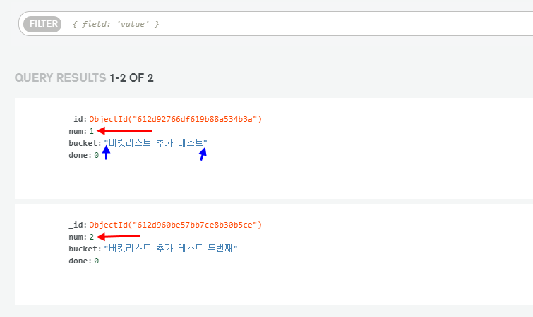 - for 문으로 rows 배열을 돌며 bucket과 num, done을 받아