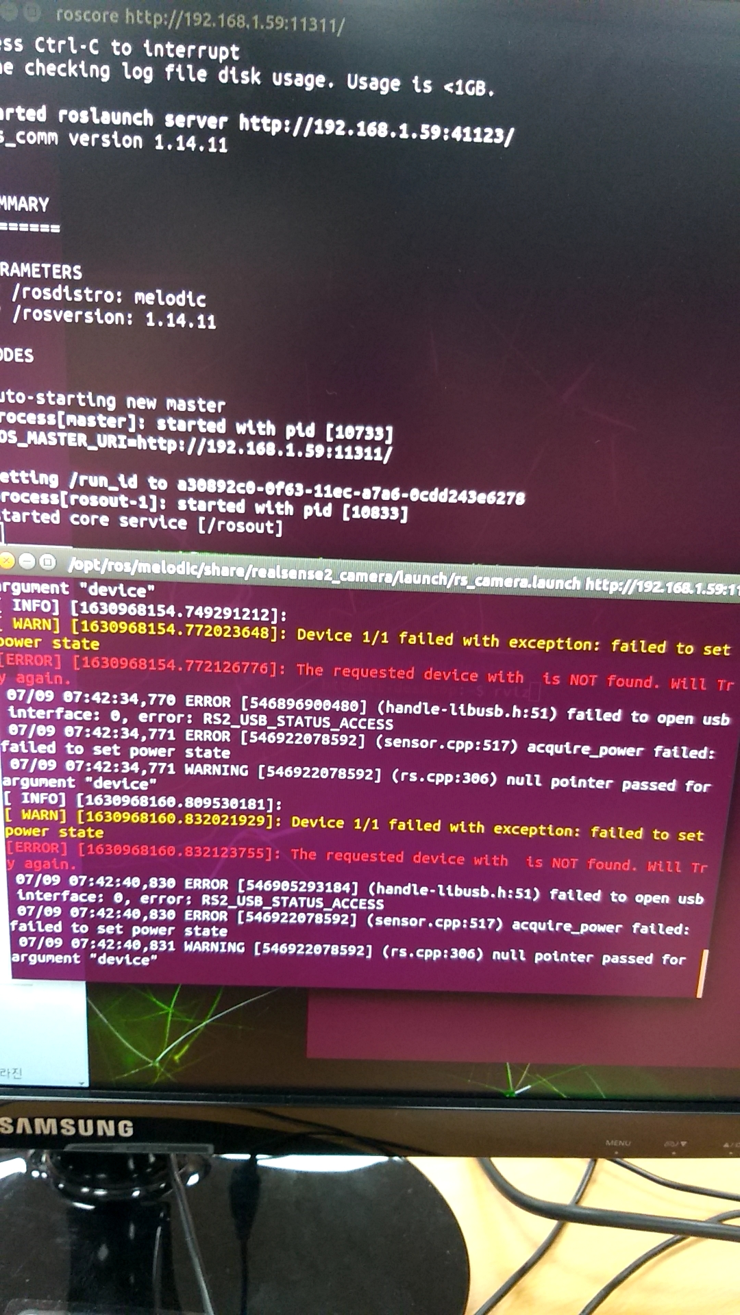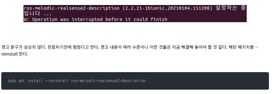 이 과정을 진행하면서 RealSense Viewer와rs-enumerate-devices는 성공했지만 여전히 같은 오류가 나왔다.