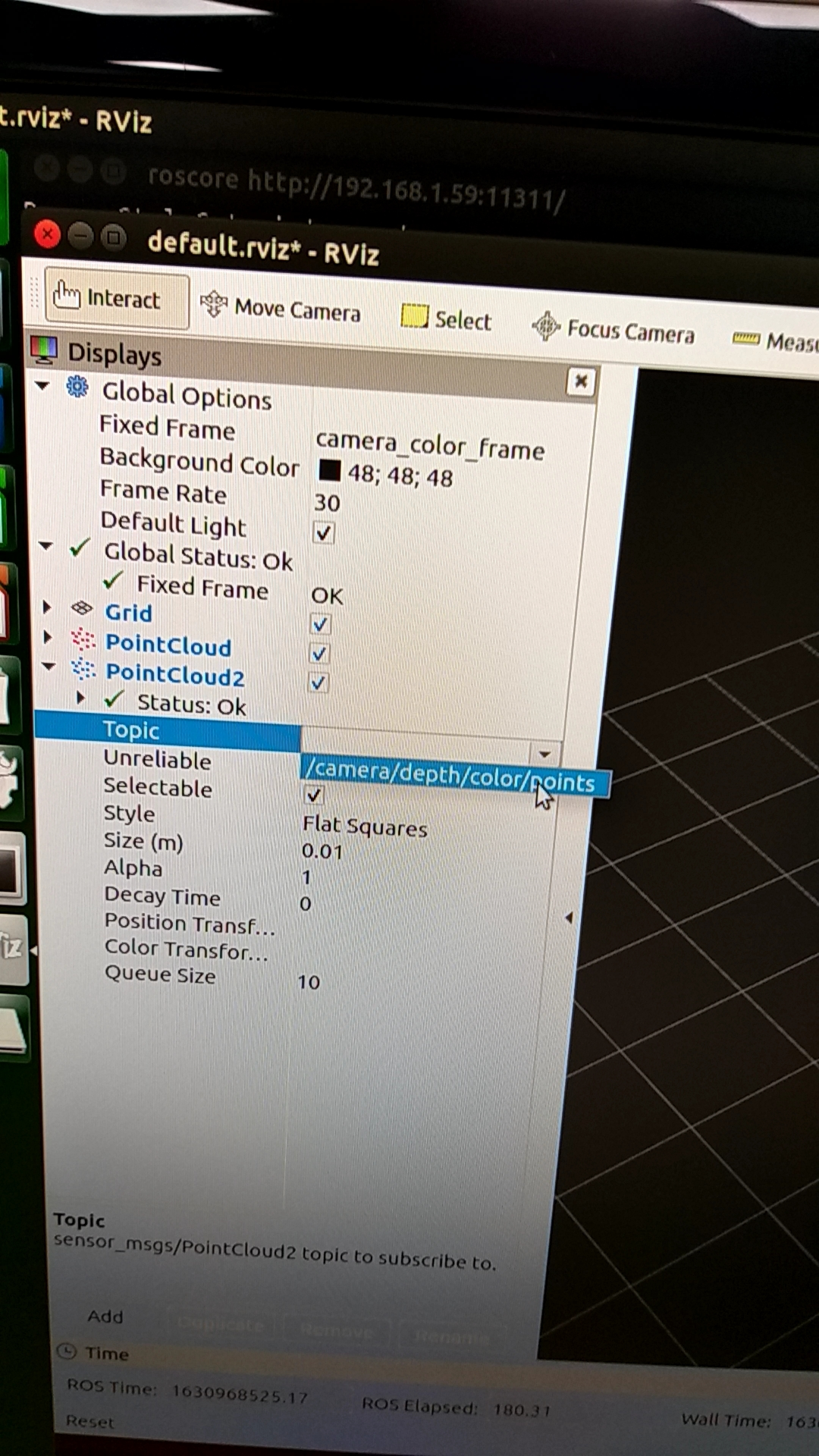 5. roslaunch realsense2_camera rs_camera.launch filters:=pointcloud 로 실행해본다.