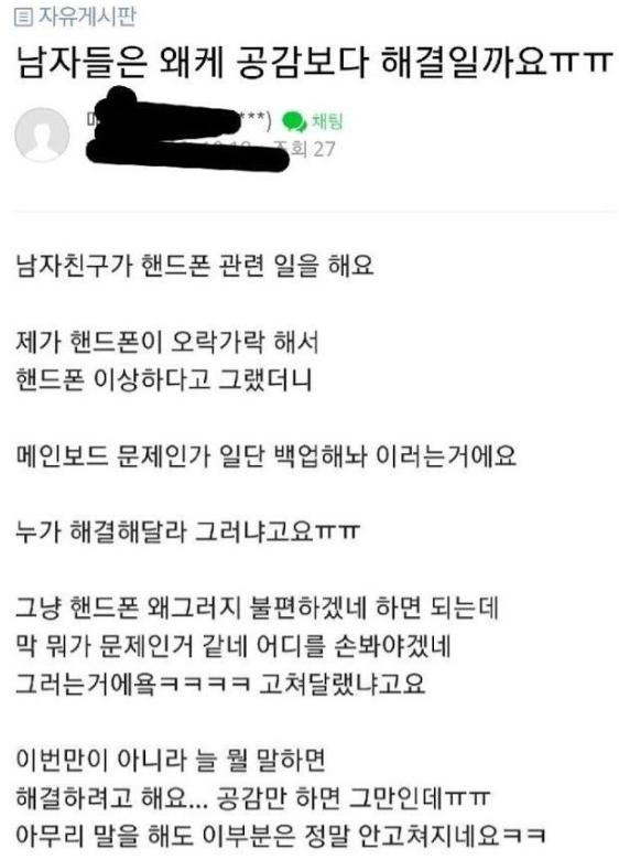 - 나는 공감을 바라고 여자친구는 정답을 말한다.