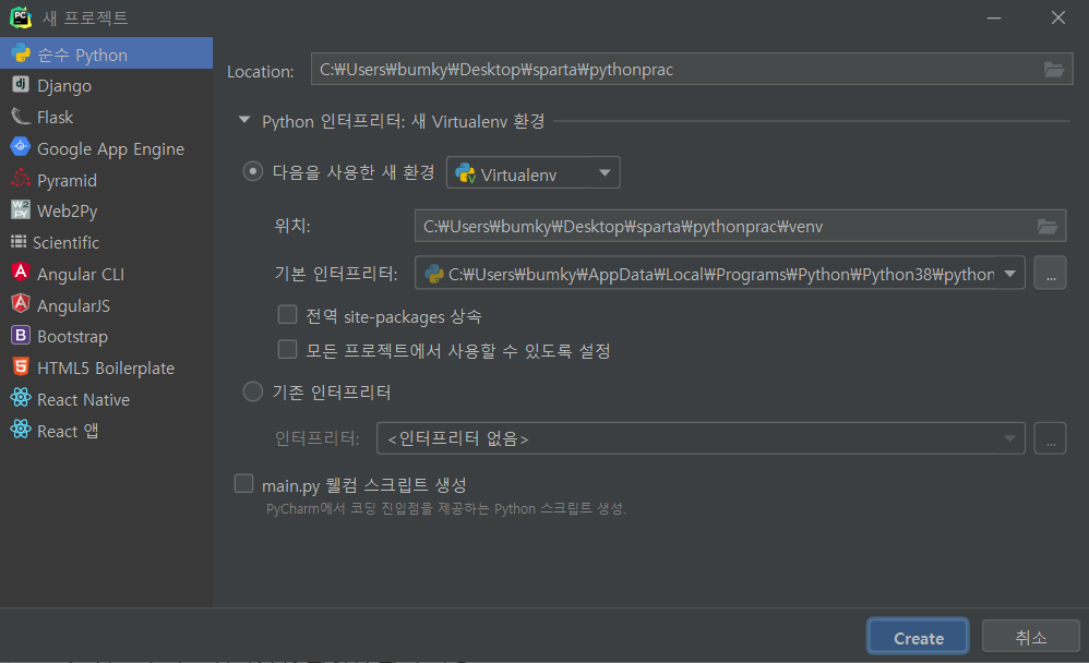 - 파이썬 프로젝트 만들기