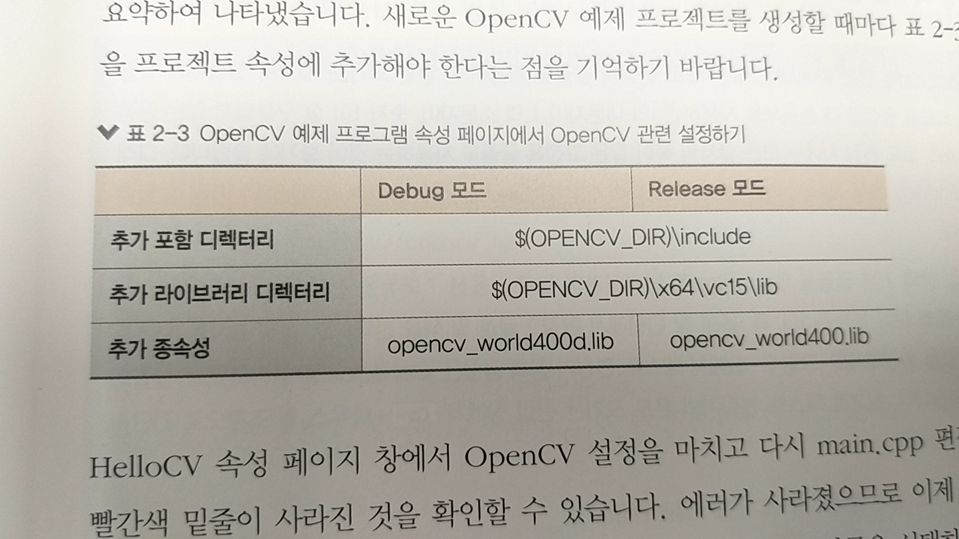 같은 방식으로 release로 바꾸어 진행하되 추가 종속성만 opencv_world{자신의 버전입력}.lib 로 해줍니다.