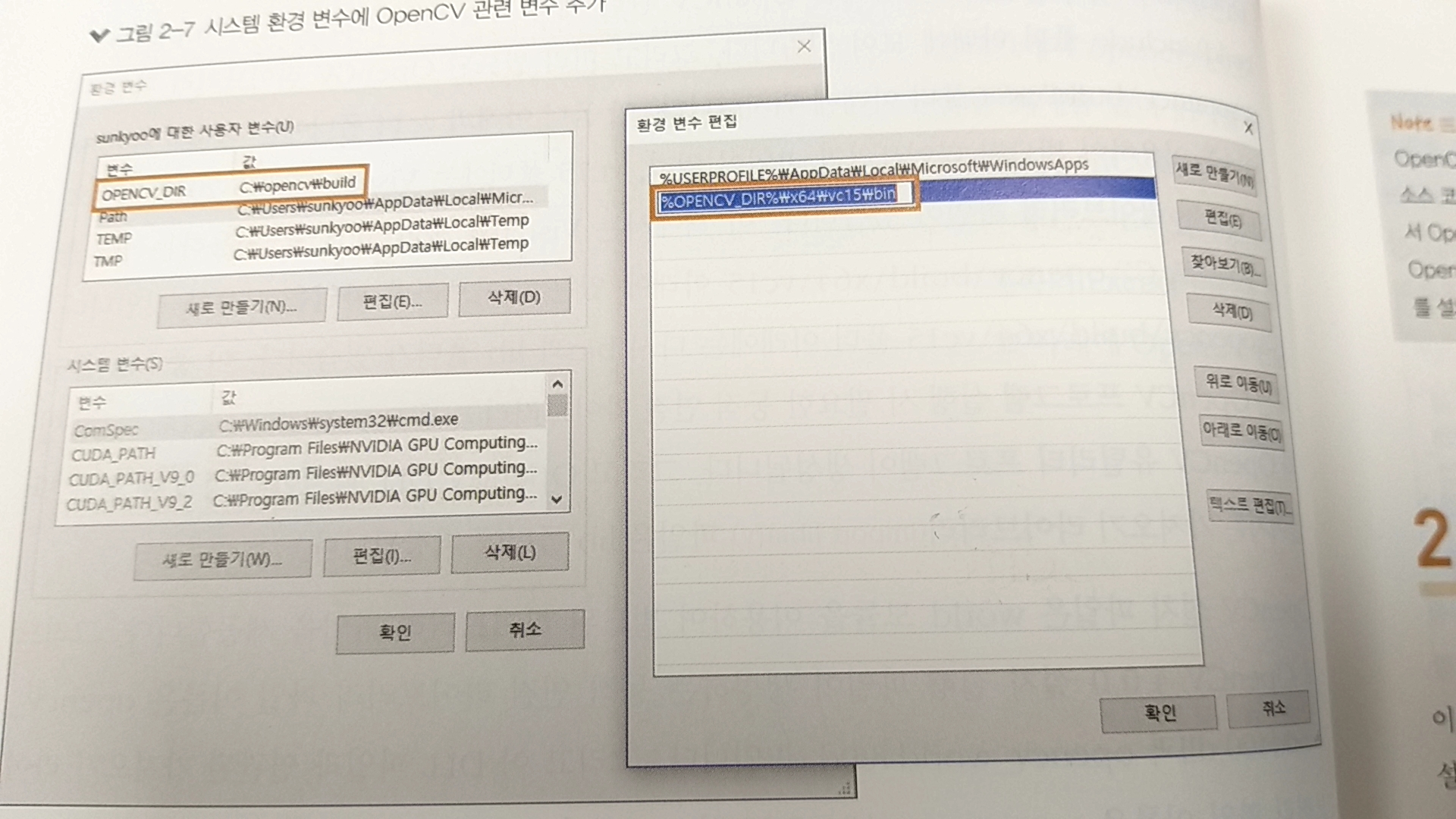 설치가 완료되었으면 시스템 환경변수 PATH에 OpenCV DLL 파일 폴더 위치를 추가해야 하는데