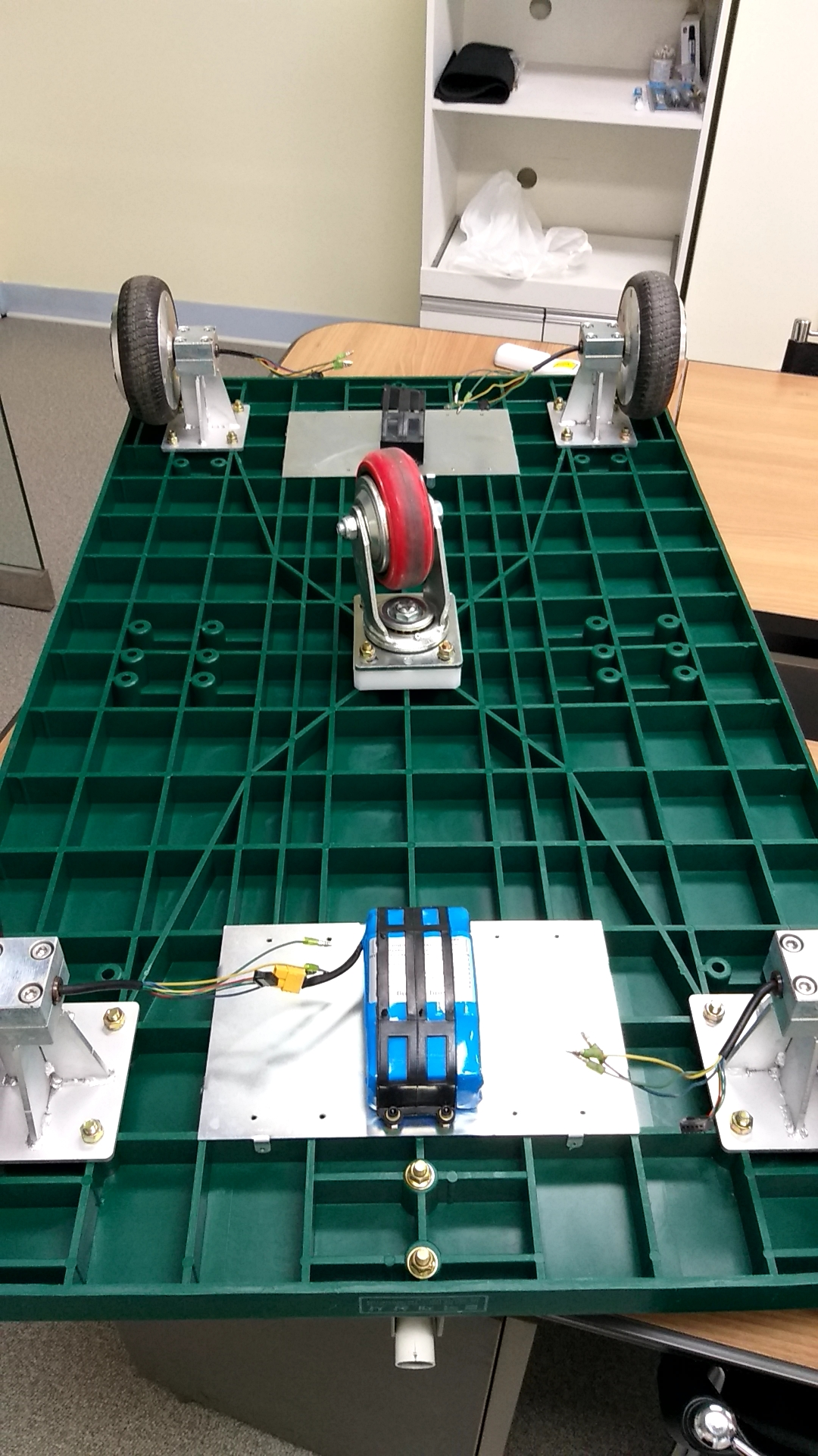 회사에 프로토타입 두개가 있었는데 하나는 대형 팔레트에 호버보드 바퀴 4개, 보조바퀴 1개였고 다른 하나는 중형 팔레트에 호버보드 바퀴 2개 보조바퀴 2개였다.