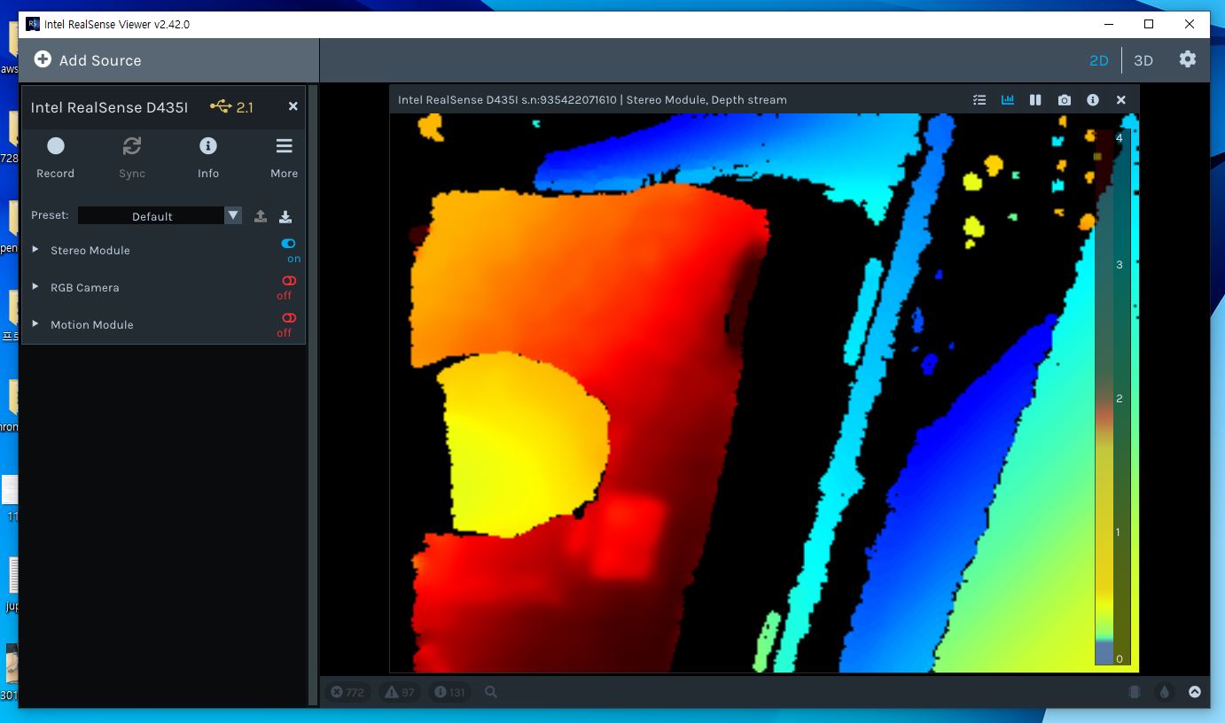 우선 강사님의 말을따라 뎁스 카메라를 윈도에서 작동시켜보기로 했다.