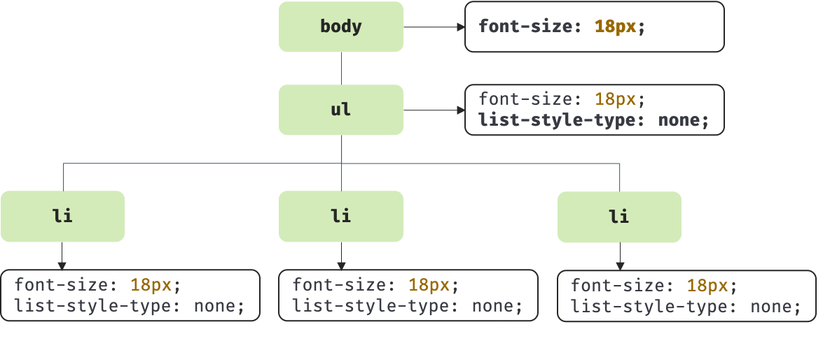 - 화면에 표시되는 각 노드에 대해 적절하게 일치하는 CSSOM 규칙을 찾아 적용합니다.