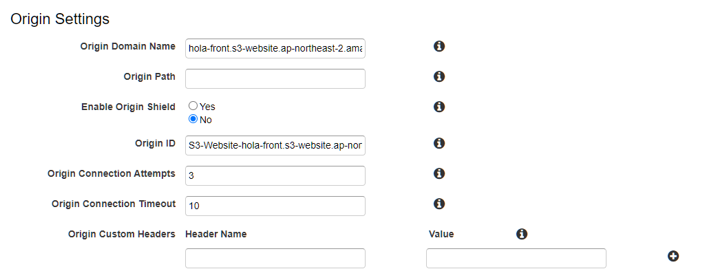 - 우선적으로 버켓의 endpoint를 지정해줘야한다! 우리는 S3 bucket으로 배포한 값을 호스팅 할 거니까, S3를 통해 배포된 버켓의 주소를 복사해서 붙여넣자.