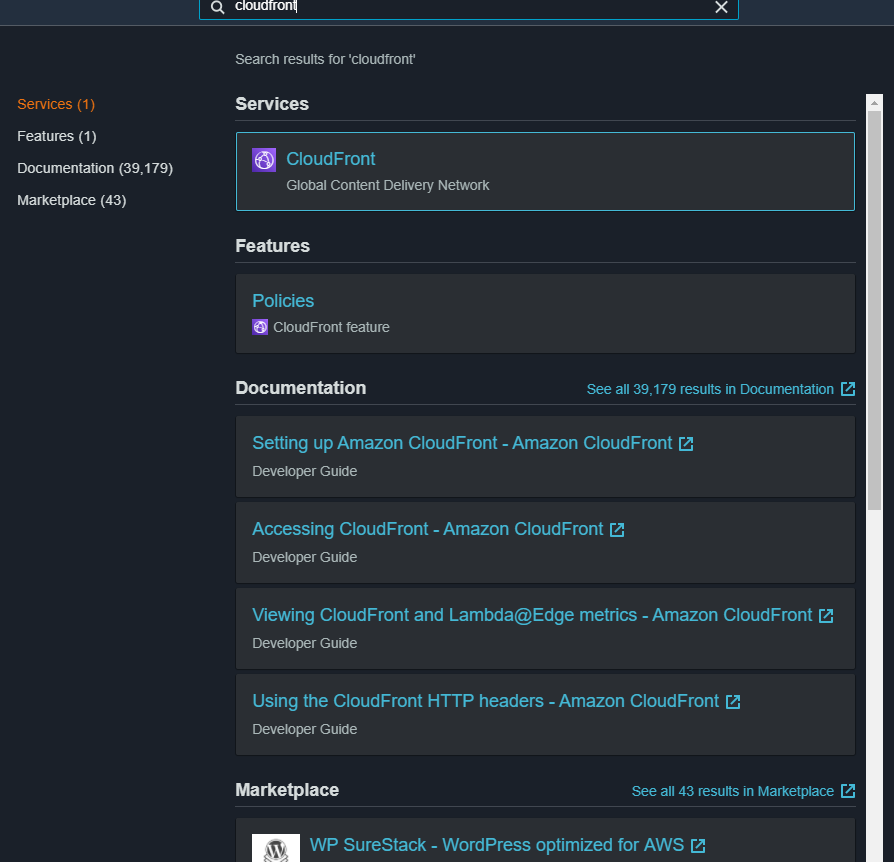- AWS console에서 CloudFront 검색 후 클릭!
