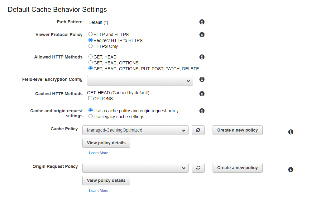 - 허용할 HTTP Method를 체크하고 http로 접속한 user를 https로 redirect 시켜주는 옵션인 redirect HTTP to HTTPS도 체크해주자.