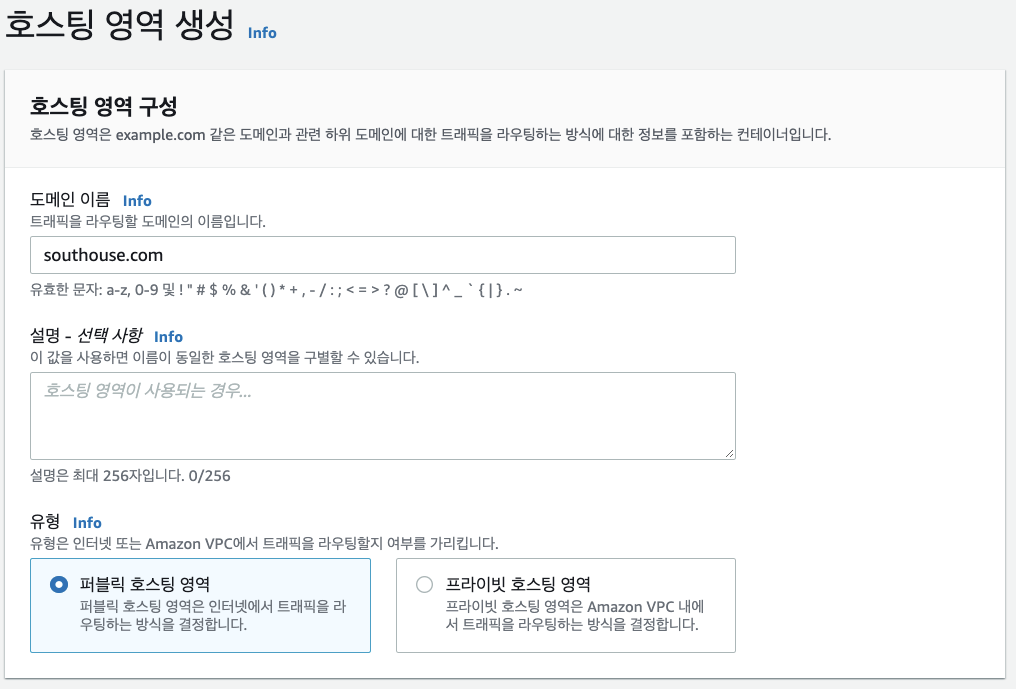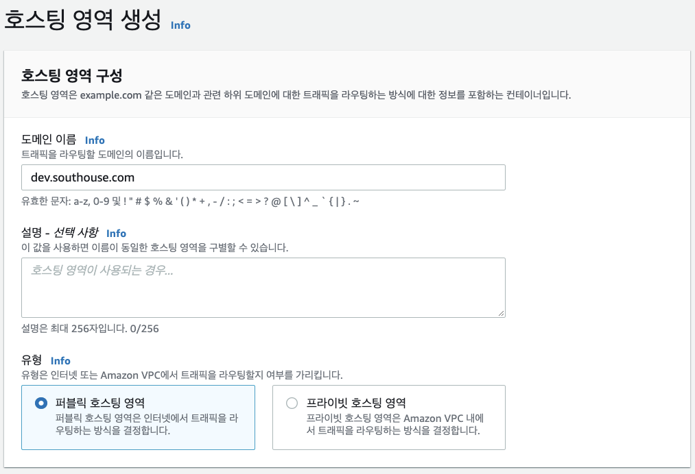 개발 도메인 호스팅 영역 생성