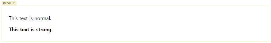 - 표현되는 외양은 b tag와 동일하지만 웹표준을 준수하고자 한다면 strong를 사용하는 것이 바람직하다.