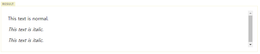 - i tag와 동일하게 Italic체로 표현된다.