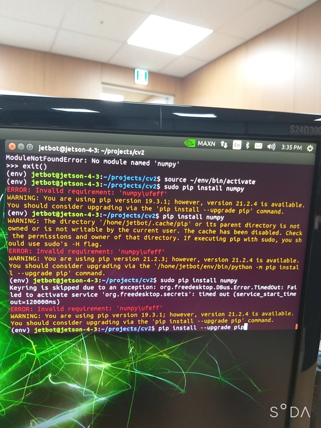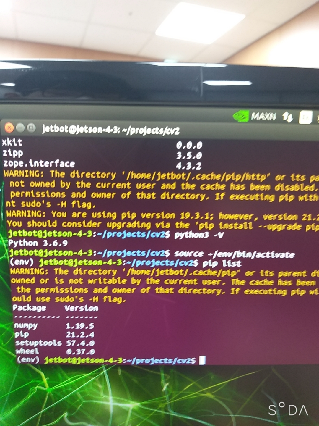 수많은 시행착오 끝에 드디어 opencv를 jetson nano에 가상 환경으로 설치하였다.