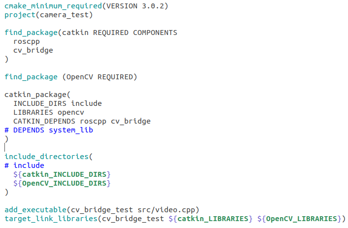 로 의존성등록을 한다. (c++사용을 위한 roscpp, ROS와 opencv사이의 다리 역할인 cv_bridge를 추가한다.)