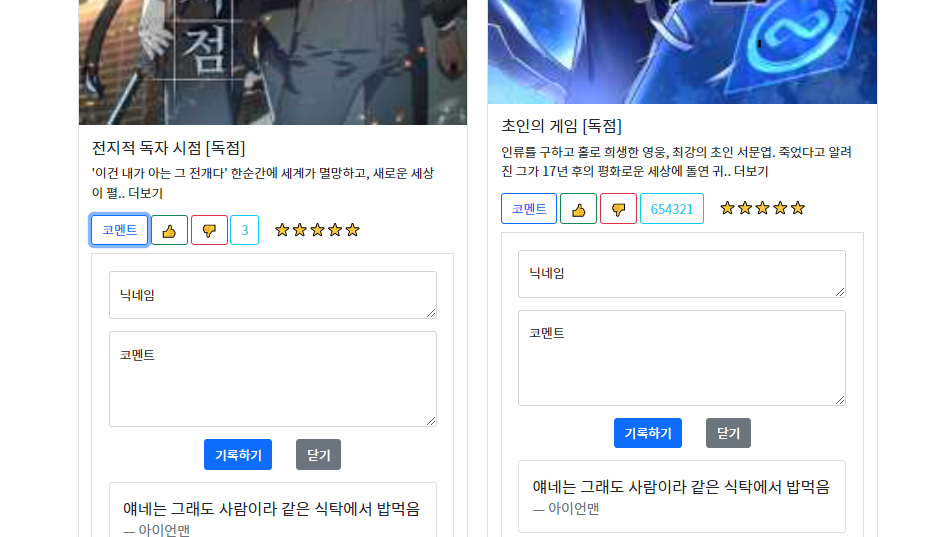 - 나는 카드마다 삭제버튼을 만들어 따로 삭제하게 하고 싶었고 새로고침할때마다 카드가 나오게 하고 싶었는데 이 두가지는 구현을 못했다..