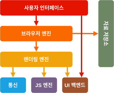 - 브라우저 엔진: 사용자 인터페이스와 렌더링 엔진 사이 동작을 제어